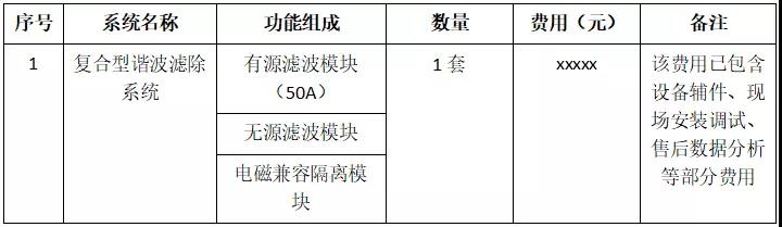針對用戶目前最關(guān)注的EMS輸送鍊因諧波誤動問題,拟選用可男複合型諧波濾除系統對1号輸送鍊進行治理(lǐ),項目預算(suàn)如(rú)個要下(xià)表1: