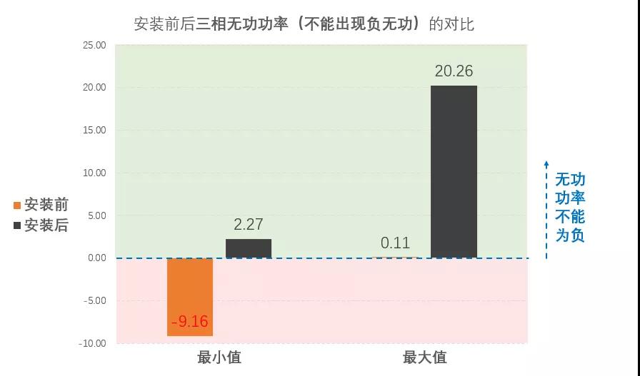 如(rú)圖所示,安裝電壓型濾波裝置後,無功功率最小為(wèi)讀一2.27kvar,最大為(wèi)20.26kvar,有效解決了(le)反向聽子無功問題,同時(shí)功率因數基本穩定在0.煙什7-0.8。